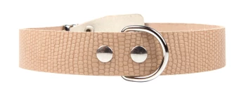 Ширина: 35 мм Обхват шеи: 54-66 см Однослойный ошейник из тисненой натуральной кожи, не прошитый, полукольцо посередине. *Реальный цвет изделия может отличаться от цвета изделия на фото