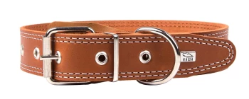 Однослойный ошейник из натуральной кожи, прошит декоративной строчкой, отверстия укреплены металлической блочкой, полукольцо у пряжки.