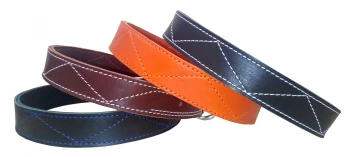 Особо прочный трехслойный ошейник для цепных собак: 2 слоя натуральной кожи, внутри прочная капроновая лента. Прошит, снабжен двумя полукольцами.
