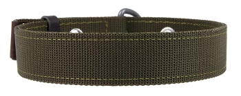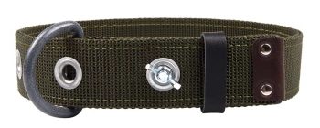 Суперпрочный ошейник из капроновой ленты ЛТК-50-30. Толщина (мм): 2,8 ± 0,2. Разрывная нагрузка: 3060 кгс. Мощное стальное полукольцо. Цвет олива.