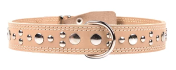 Двухслойный ошейник из натуральной кожи с металлическими украшениями, проклеен, прошит декоративной строчкой, полукольцо у пряжки.