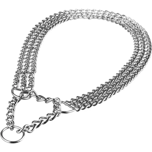 Функциональный трехрядный ошейник-удавка из металла - это незаменимый аксессуар для выгула и дрессировки бойцовских собак и питомцев крупных пород. Ошейник моментально затягивается при натяжении поводка, за счет чего эффективен при дрессировке с целью усиления воздействия на рывках. Аксессуар не перетирает шерсть, так как изготовлен из металла высокого качества, защищен от коррозии, не боится влаги и дождя и легко моется от грязи и пыли.