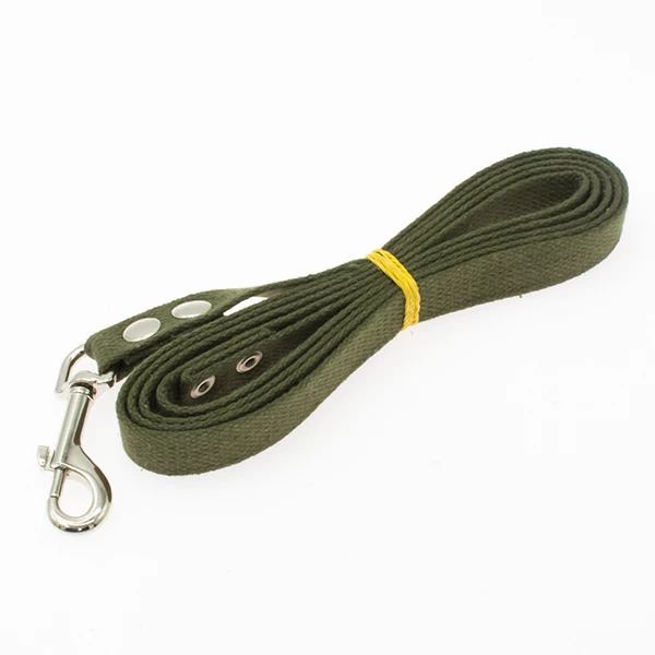 Поводок для собак, изготовленный из высококачественной брезентовой ткани, снабжен металлическим карабином. Изделие отличается не только исключительной надежностью и удобством, но и привлекательным дизайном.