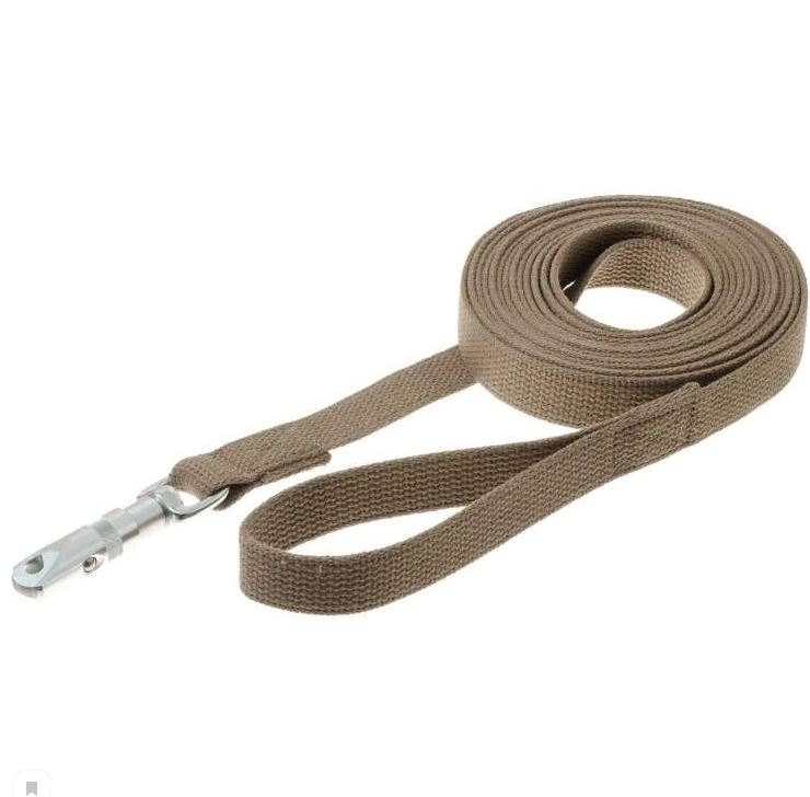 Поводок для собак, изготовленный из высококачественной брезентовой ткани, снабжен металлическим карабином. Изделие отличается не только исключительной надежностью и удобством, но и привлекательным дизайном.
