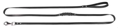 Поводок однослойный длинный шириной 14 мм, с плетением посередине, не прошитый, с фактурным тиснением, из натуральной кожи.