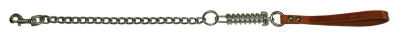 Особо прочный поводок-цепочка с ручкой из натуральной кожи. Амортизатор нейтрализует рывки собаки, усиливая надежность и прочность поводка.