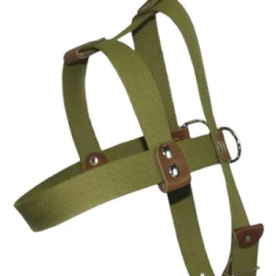 Универсальная брезентовая шлейка со вставками под фурнитуру из натуральной кожи. Разрывная нагрузка ленты: 290 кгс. Для средних пород собак.