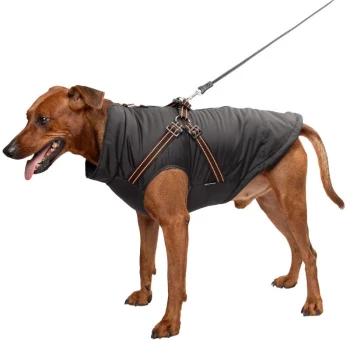Жилет со шлейкой "Спорт" 2XL, 49*62см, Gamma. Удобный и функциональный жилет на теплой подкладке из флиса "Спорт" выполнен из водоотталкивающей и ветронепроницаемой ткани, которая защитит питомца от холода и грязи. Застежка-молния на спине максимально облегчает одевание питомца, а два кольца для крепления поводка позволяют обойтись без дополнительной амуниции. Размер: длина спины 490 мм, обхват груди 620 мм. Цвет: черно-оранжевый.. Одежда для собак.