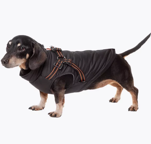 Жилет со шлейкой "Спорт" M, 29*40см, Gamma. Удобный и функциональный жилет на теплой подкладке из флиса "Спорт" выполнен из водоотталкивающей и ветронепроницаемой ткани, которая защитит питомца от холода и грязи. Застежка-молния на спине максимально облегчает одевание питомца, а два кольца для крепления поводка позволяют обойтись без дополнительной амуниции. Размер: длина спины 290 мм, обхват груди 400 мм. Цвет: черно-оранжевый.. Одежда для собак.