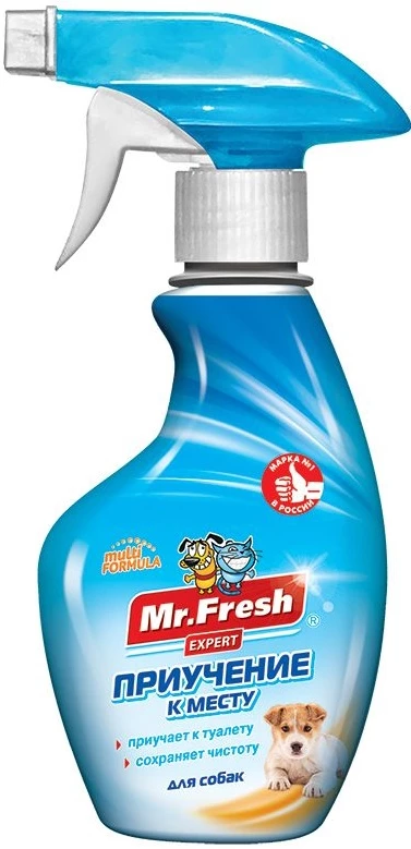 Масла аниса и мускатного ореха – Приманивают питомца, повторяя его собственные метки Парфюмерная композиция «Ринтинтин» – Обладает приятным для собаки ароматом – Привлекает к обрабатываемой поверхностиИспользуйте Mr.Fresh Expert Приучение к месту для:? Приучения щенков и собак к пелёнке или лотку? Профилактике проблем при переезде в новый дом или смене лотка? Сохранения чистоты в домеВстряхните флакон и распылите средство на кусочек бумаги. Положите бумагу на место, которое вы определили в качестве туалета и привлечките внимание питомца. Лучше это сделать после пробуждения или приема пищи животными. Следует менять бумагу после каждого туалета питомца. Процедуру следует повторять в течение 10–14 дней до появления у питомца стойкой привычки ходить в это место.Объём: 200 млСостав разработан компанией Neoterica (Германия).