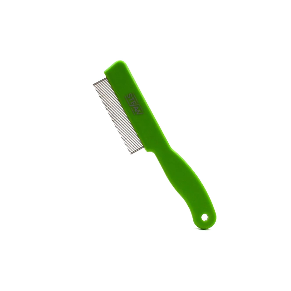 Частые металлические зубья расчески с легкостью вычесывают блох и других наружных паразитов, а также грязь и выпавшие волоски с шерсти Вашего питомца. Закругленные концы зубьев исключают повреждение кожи животного. Процедура вычесывания обеспечивает легкий массаж, стимулирует кровообращение и делает шерсть Вашего питомца здоровой и блестящей.