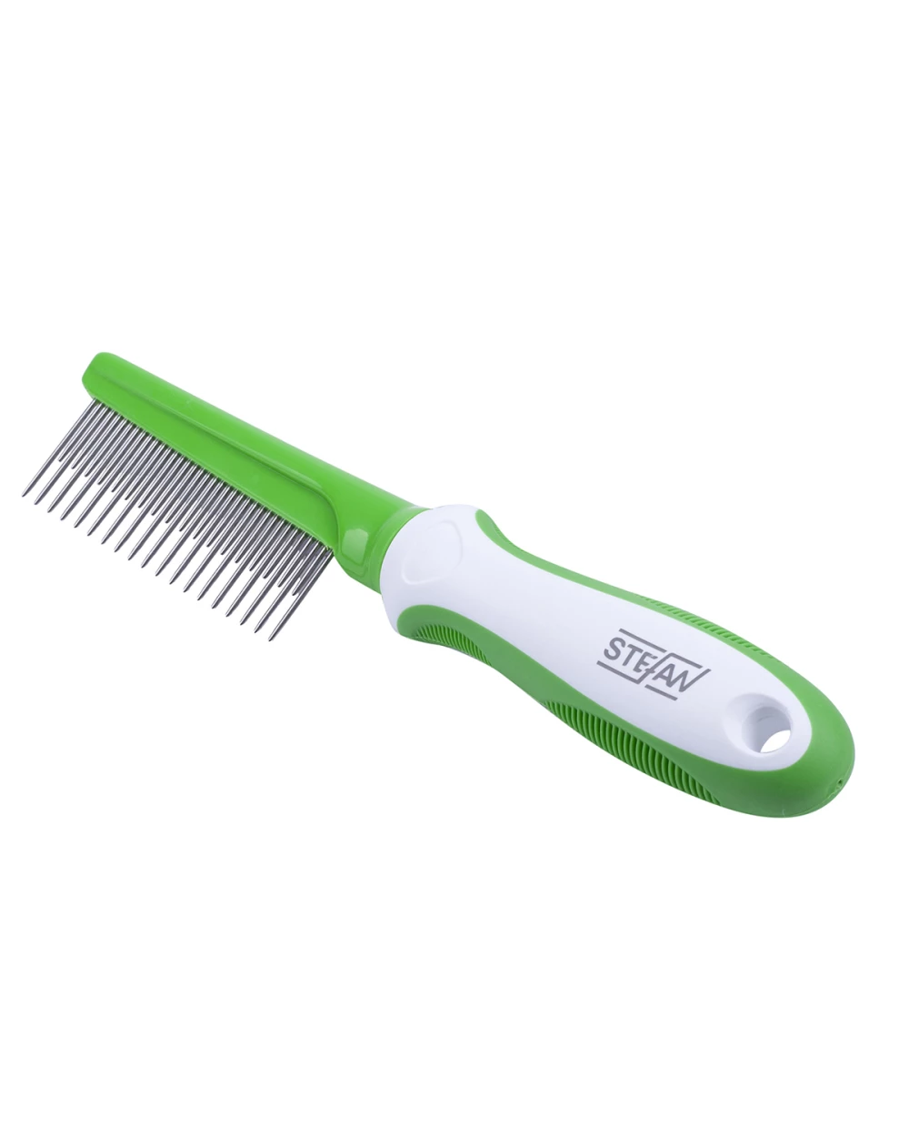 Расческа сочетает зубья различной длины и эффективно удаляет выпавшие волоски из шерсти и подшерстка.