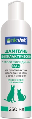 ОКVЕТ® шампунь профилактический с хлоргексидином» назначают собакам и кошкам в качестве антисептического средства для лечения мелких ран, ссадин, порезов и других заболеваний кожи, осложненных бактериальной инфекцией, в комплексе с симптоматическими и патогенетическими средствами, а также для профилактики осложнений различных повреждений кожи после стрижки и тримминга.