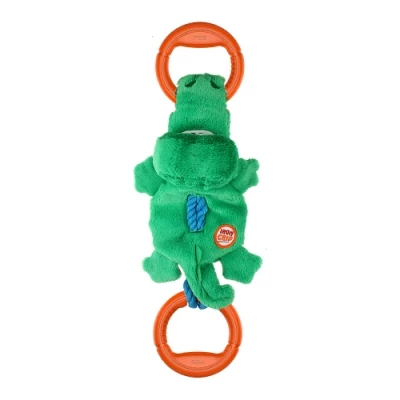 Игрушка для собак "Крокодил" изготовлена из высококачественного текстильного материала, усиленного веревкой и резиновыми кольцами. Игрушка подходит для активных игр дома или на прогулке. Неабразивный, нетоксичный материал не ранит зубы и дёсны. Игрушка оснащена пищалкой.
