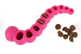 Эластичная игрушка "Червячок" для животных с отверстиями для сухого корма. Изготовлена из термопластичной резины (TPR), данный материал является экологичным, не токсичным, износоустойчивым. Прекрасно массирует десны за счет разнообразной структуры, помогает бороться с образованием зубного камня, улучшая здоровье ротовой полости.