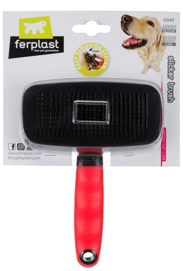 Эта пуходерка для собак оснащена специальной системой очищения от снятой шерсти. Фактически, специальная пластинка проталкивает волоски к краю зубьев для легкого удаления из пуходерки. Представлена двумя размерами для животных со средней и длинной шерстью. Маленькая модель GRO 5955 подходит для собак и кошек. Большая модель GRO 5956 больше подходит для собак.