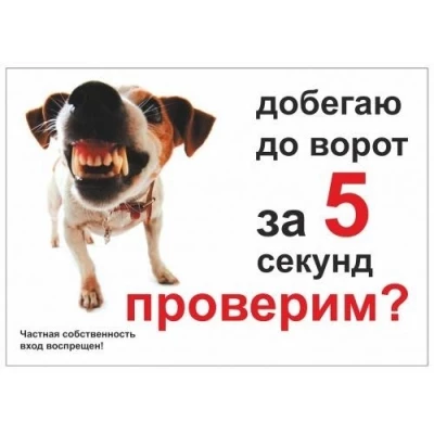 Табличка "Добегаю до ворот за 5 секунд" 21,6*15,4см
