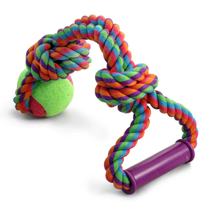 Суперпрочная игрушка для апортировки, отлично подойдёт для активной игры в парке или на даче. Собаки обожают играть с веревочными игрушками, так как их можно грызть, трепать и носить в зубах. Такие игрушки отлично массируют десны и очищают зубной налет во время игры. Веревки сплетены из нитей натурального хлопка, поэтому безопасны для здоровья Вашего питомца. Цвет: разноцветный. Размер d65*380*140мм. Вес 250-260г.