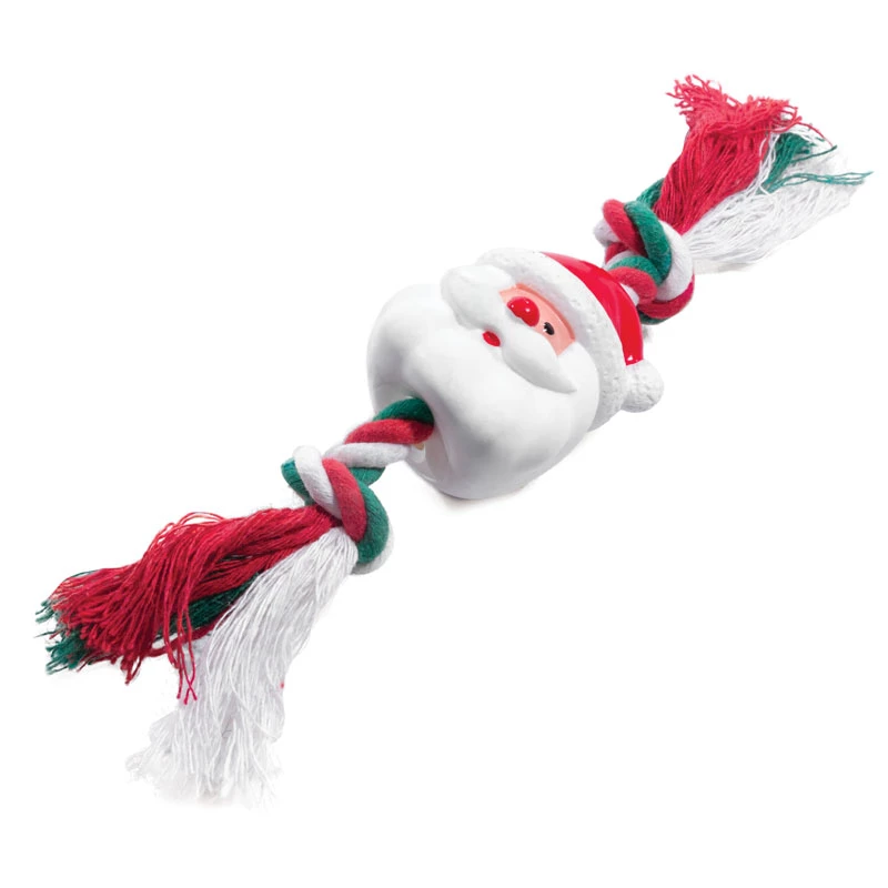 Игрушка "Дед Мороз с веревкой" - лучший способ поздравить четвероногого любимца с праздником! Такая игрушка послужит не только функциональным аксессуаром, но и настоящим украшением вашего дома в преддверии Нового года. Цвет: сочетание белого, красного и зеленого. Размер изделия: 60/220мм (с веревкой).