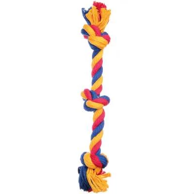 Плетеная игрушка-трепалка из разноцветных веревок из натурального хлопка, с добавлением синтетических нитей. Такая игрушка рекомендована для тренировки жевательных мышц.
