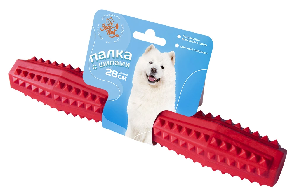 Игрушка палка литая с шипами "Зооник" 28 см (пластикат), красная