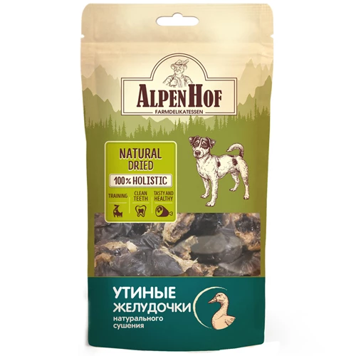 AlpenHof Утиные желудочки натурального сушения — это идеальное угощение, перед которым не сможет устоять ни один питомец. Лакомство для собак способствует росту уровня гемоглобина в крови, улучшению состояния шерсти и зубов. Содействует повышению тонуса и быстрому восстановлению сил.