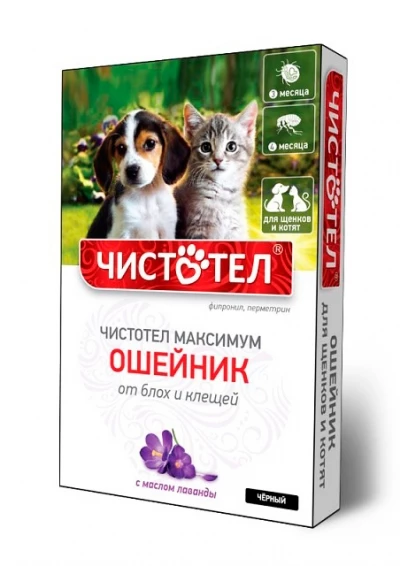 Чистотел Максимум ошейник применяют для уничтожения блох, вшей, власоедов и иксодовых клещей, паразитирующих на щенках и котятах старше 4-месячного возраста, а также для защиты животных от их нападения, особенно в теплое время года (в период повышенной активности паразитов).