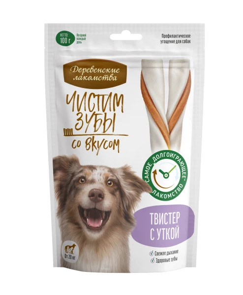 Лакомства для собак Деревенские лакомства Чистим зубы Твистер с уткой 100г