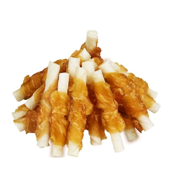 Состав: куриное мясо, сыромятная говяжья кожа.