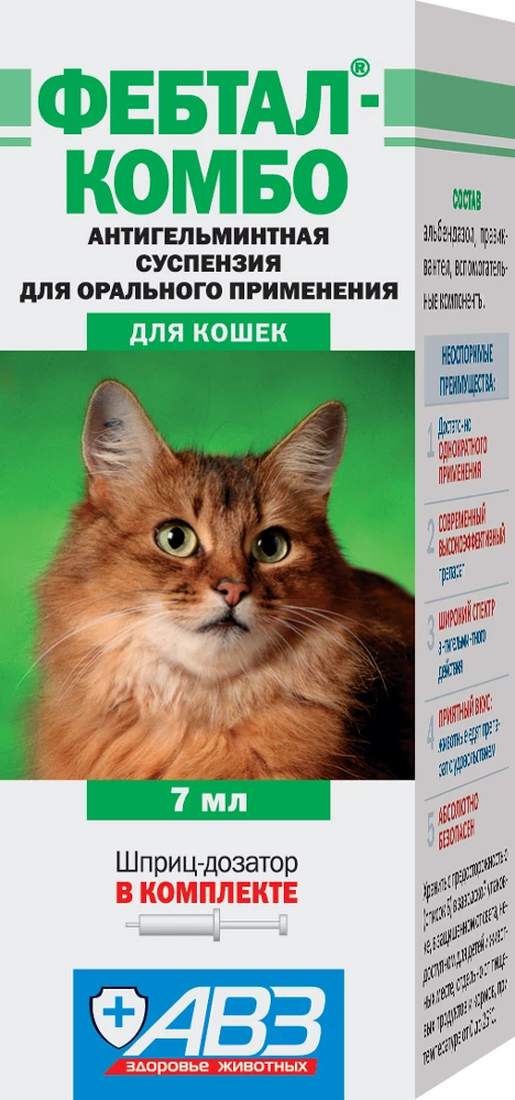 Фебтал-комбо назначают собакам и кошкам с профилактической и лечебной целью при нематодозах (токсокароз, токсаскаридоз, унцинариоз, трихоцефалез, анкилостомоз), цестодозах (тениидоз, дипилидиоз, эхинококкоз, дифиллоботриоз, мезоцестоидоз) и смешанных нематодо-цестодозных инвазиях.