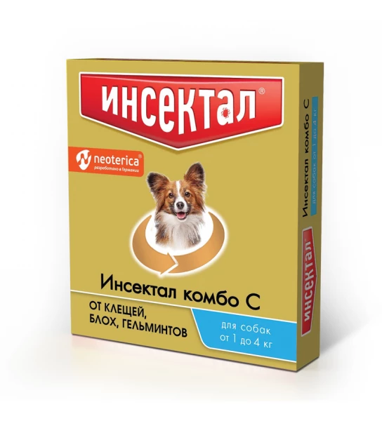 Капли на холку для собак от 1кг до 4кг Инсектал Комбо против блох, клещей и гельминтов