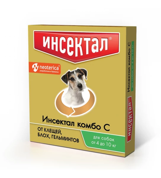 Капли на холку для собак от 4кг до 10кг Инсектал Комбо против блох, клещей и гельминтов