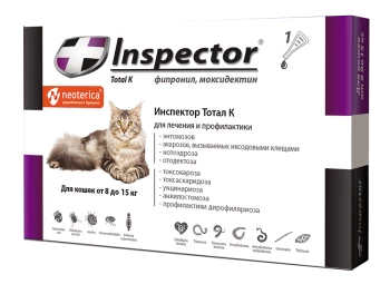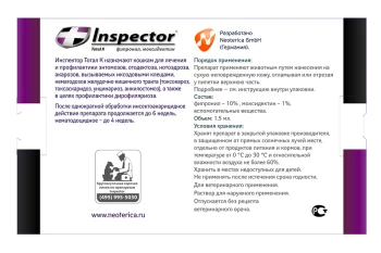Inspector защищает от 20 видов внешних и внутренних паразитов. Inspector — это инсектоакарицид и антигельминтик.