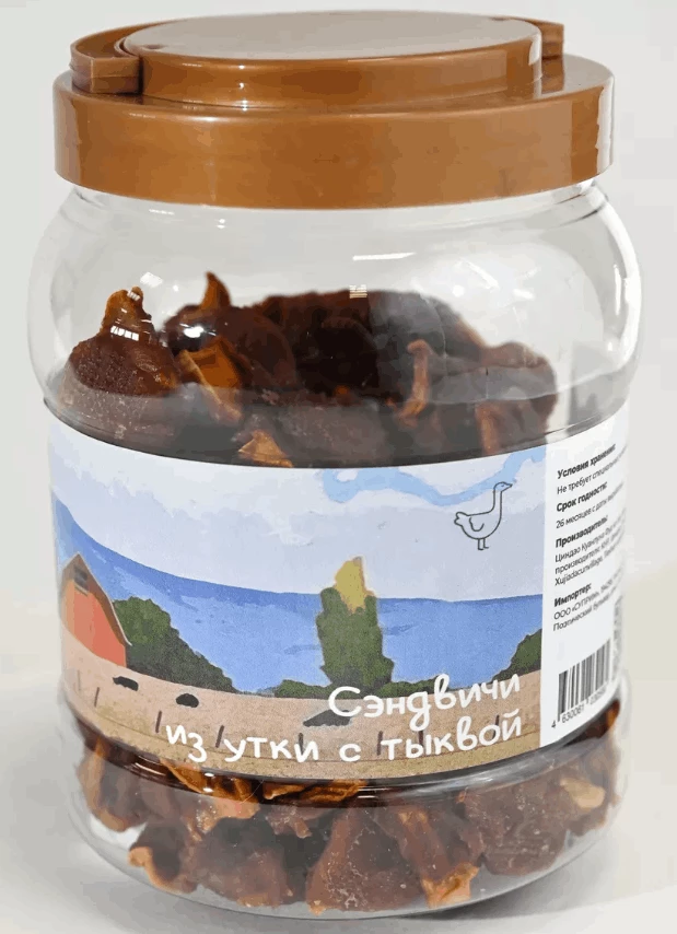 Выпускаются в форме аппетитных сэндвичей с добавлением тыквы. Изготовлены из натурального и аппетитного филе утки без добавления искусственных красителей и консервантов, идеально подходят для всех животных. Вы можете быть уверены в качестве продукции, которую даете своим питомцам.