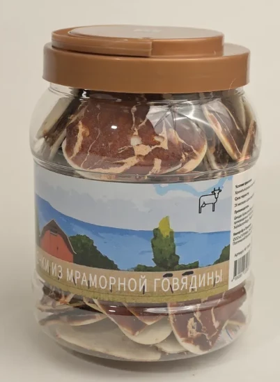 Изготовлены из натурального вяленого филе говядины на сыромятной коже, что помогает при интенсивном жевании механической чистке зубов и снижает образование зубного налета и камня.