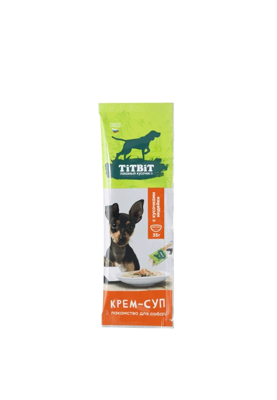 Крем-суп TITBIT - это влажное лакомство, нежной кремовой текстуры с кусочками мяса. Изготовлен из натуральных ингредиентов, содержит 98% мяса. Порция рассчитана на один прием пищи, идеально дополнит и разнообразит рацион вашего питомца. Удобная упаковка позволяет кормить питомца прямо с рук или брать с собой в дорогу. Подходит собакам любых пород и размеров, старше 12 недель.