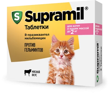 - За повышенную безопасность Supramil отвечает R-празиквантел. Продвинутые технологии в разработке антигельминтных препаратов позволили значительно улучшить профиль безопасности Supramil по сравнению с любым средством от гельминтов на основе традиционного празиквантела.