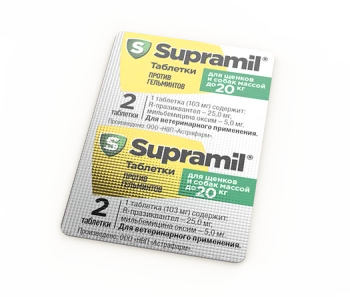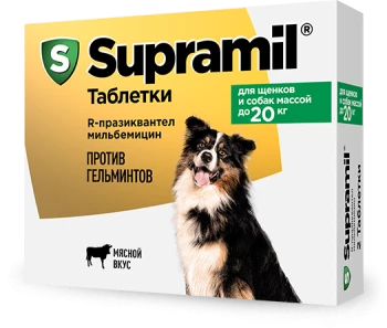 Таблетки для щенков и собак до 20кг Supramil (Супрамил) от гельминтов 2 таб