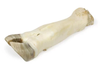 Высушенная говяжья голень с копытом. Изделие содержит кожу, костную ткань, жир, соединительную ткань и небольшие прослойки мышечной ткани. Обеспечивают дополнительное поступление в организм глюкозамина и хондроитина - составных элементов для роста, развития и поддержания в норме суставов собак. Массирует десны и укрепляет жевательную мускулатуру, очищает зубной налет и предотвращает возникновение зубного камня.Особенно удобно для собак живущих в вольерных и уличных условиях. Прекрасная игрушка, сохраняющая в целости предметы интерьера и личные вещи. Изделие содержит трубчатую кость и не предназначено для полного поедания. Как только собака съела футляр из кожи, сухожилий и мышц – необходимо заменить лакомство на новое.