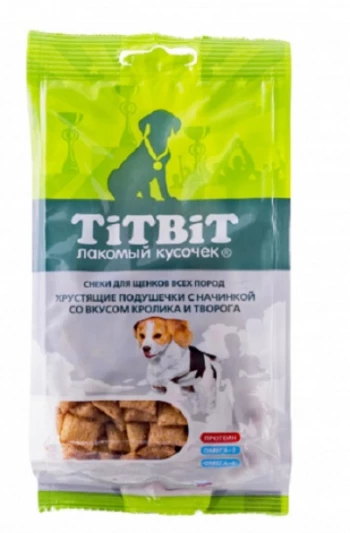 Хрустящие подушечки с начинкой со вкусом кролика и творога - это полезное хрустящее угощение, которое можно легко взять на тренировку или прогулку. Обогащено Omega 3-6 жирными кислотами для улучшения состояния кожи и шерсти. Обогащено хондроитином для укрепления суставов и связок. Поддерживает активный рост и развитие щенка. Удобный размер и форма крокет для щенков. Двойной вкус - кролика и творога - понравится даже самым изысканным гурманам.