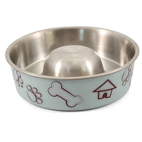 Стильная круглая миска из нержавеющей стали для собак. Она идеально подходит как для воды, так и для корма разной консистенции. Миска имеет специальную конструкцию для медленного поглощения еды, она комфортна для питомца и легко моется под струей проточной воды с использованием моющих бытовых средств. Прорезиненное основание обеспечивает максимальную устойчивость, препятствуя скольжению изделия во время использования, а оригинальный принт сделает такую миску украшением любого интерьера.