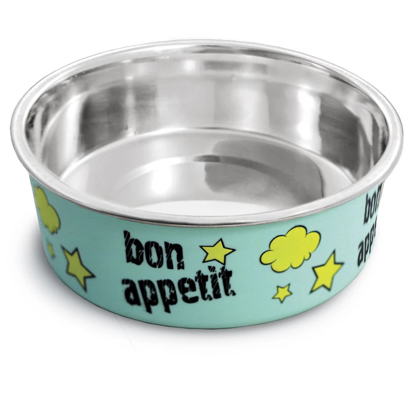 Стильная круглая миска из нержавеющей стали для кошек и собак небольших пород. Она идеально подходит как для воды, так и для корма разной консистенции. Миска комфортна для питомца и легко моется под струей проточной воды с использованием моющих бытовых средств. Прорезиненное основание обеспечивает максимальную устойчивость, препятствуя скольжению изделия во время использования, а оригинальный принт сделает такую миску украшением любого интерьера. Цвет изделия: зеленый. Объем: 0,45л. Размеры: 135*135*45мм.