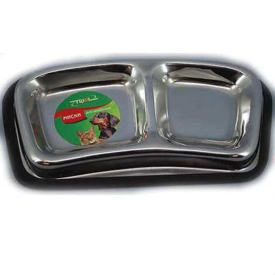 Функциональная двойная миска для кошек и собак небольших пород выполнена из нержавеющей стали. Такая миска - идеальный способ обеспечить питомцу одновременно и свежую воду, и корм. Изделие комфортно для питомца и легко моется под струей проточной воды с использованием моющих бытовых средств. А прорезиненное основание обеспечивает максимальную устойчивость изделия. Размеры: 275*145*35мм.