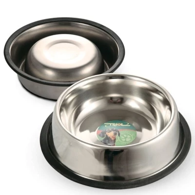 Универсальная круглая миска для собак выполнена из нержавеющей стали. Она идеально подходит как для воды, так и для корма разной консистенции. Миска комфортна для питомца и легко моется под струей проточной воды с использованием моющих бытовых средств. А прорезиненное основание обеспечивает максимальную устойчивость изделия. Размеры: 335*335*80мм.