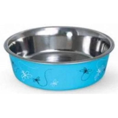 Стильная круглая миска из нержавеющей стали для кошек и собак небольших пород. Она идеально подходит как для воды, так и для корма разной консистенции. Миска комфортна для питомца и легко моется под струей проточной воды с использованием моющих бытовых средств. Прорезиненное основание обеспечивает максимальную устойчивость, препятствуя скольжению изделия во время использования, а оригинальный принт сделает такую миску украшением любого интерьера. Цвет изделия: голубой. Объем: 0,45л. Размеры: 130*130*45мм.