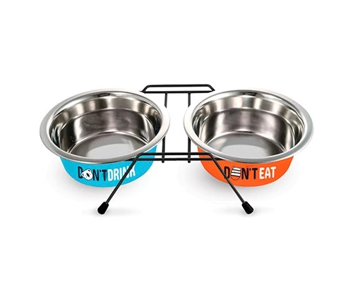 Этот функциональный комплект из двух универсальных круглых мисок для собак на подставке выполнен из нержавеющей стали высокого качества. Оригинальный принт сделает такую миску украшением любого интерьера. Такие миски идеально подходят как для воды, так и для корма разной консистенции. Изделие комфортно для питомца и легко моется под струей проточной воды с использованием моющих бытовых средств. Подставка снабжена резиновыми основаниями, что обеспечивает максимальную устойчивость изделия и препятствует скольжение во время использования. Цвет изделия: голубой, оранжевый.