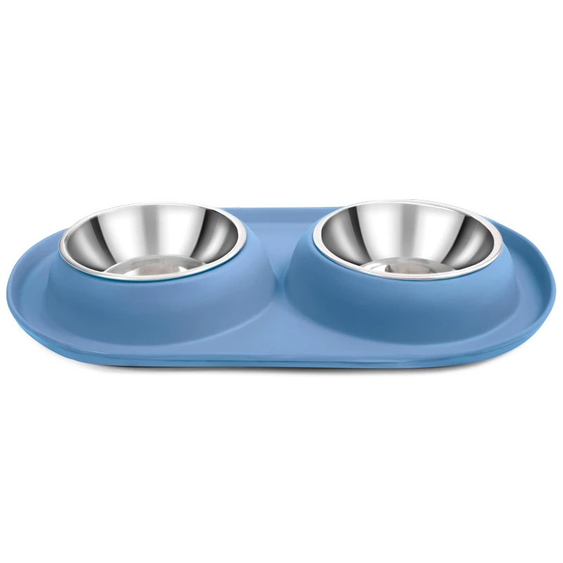 Двойная миска на подставке из термопластичной резины "Бриз" для кошек и собак небольших пород. Она идеально подходит как для воды, так и для корма разной консистенции. Удобная съемная конструкция позволяет легко мыть миски из нержавеющей стали под струей проточной воды с использованием моющих бытовых средств. Гибкая подставка, выполненная из термопластичной резины, обеспечивает максимальную устойчивость, препятствуя скольжению изделия во время использования, а приятный цвет сделает такую миску украшением любого интерьера. Цвет изделия: серебристо-голубой. Объем: 0,22л. Размеры: 270*d145*h45мм.
