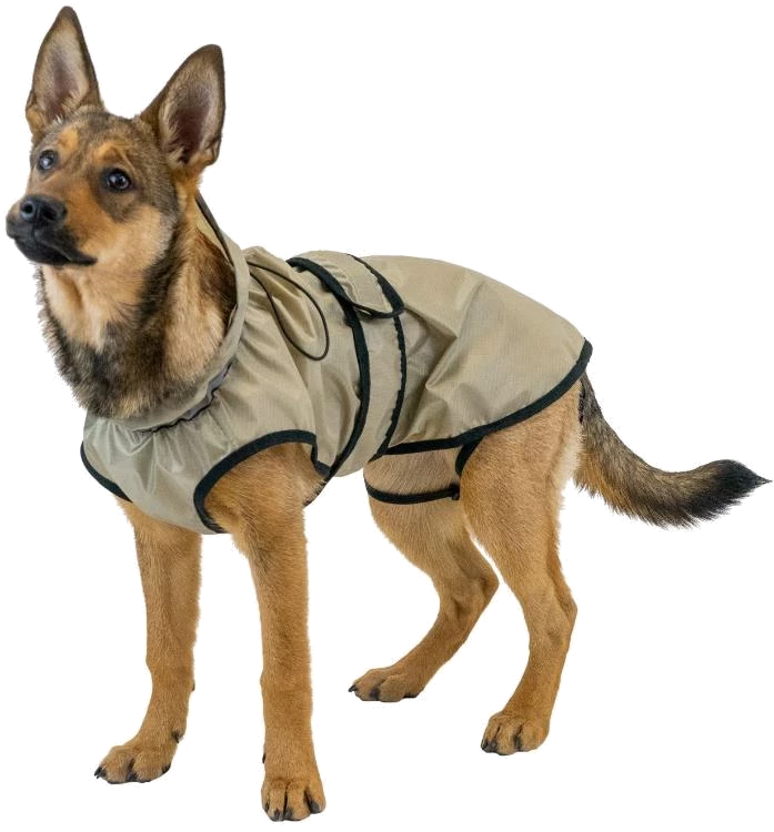Дождевик для собак, лёгкий и практичный. Защищает от дождя, ветра и грязи. Имеет несколько видов регулировки: шнурок-резинку по воротнику, пояс на липучке, а так же фиксирующие резинки для задних лап, что позволяет максимально точно скорректировать данную модель под своего питомца. На воротнике расположена светоотражающая лента для лучшей видимости. Дождевик идёт в комплекте с мешочком для компактного хранения, благодаря чему он легко помещается в карман. Кроме того, мешочек имеет петлю на липучке, которую можно прикрепить к шлёвке брюк или поясу. Размер: обхват шеи 32-57см, обхват груди 49-64см, длина спины 50см.