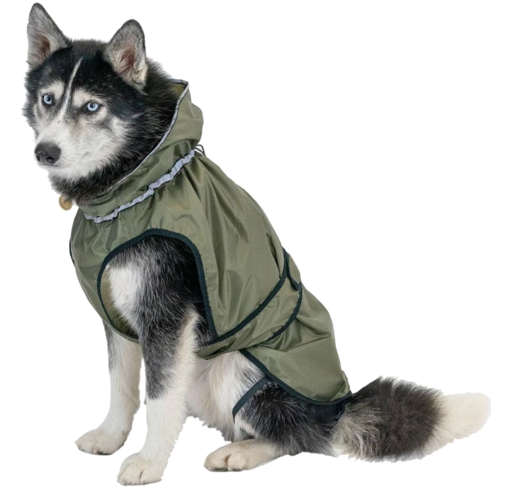 Дождевик для собак, лёгкий и практичный. Защищает от дождя, ветра и грязи. Имеет несколько видов регулировки: шнурок-резинку по воротнику, пояс на липучке, а так же фиксирующие резинки для задних лап, что позволяет максимально точно скорректировать данную модель под своего питомца. На воротнике расположена светоотражающая лента для лучшей видимости. Дождевик идёт в комплекте с мешочком для компактного хранения, благодаря чему он легко помещается в карман. Кроме того, мешочек имеет петлю на липучке, которую можно прикрепить к шлёвке брюк или поясу. Размер: обхват шеи 40-83см, обхват груди 66-86см, длина спины 80см.