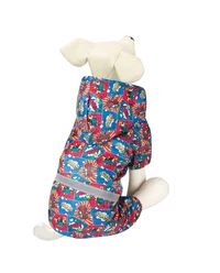 Костюм-дождевик "Феерия" - это удобный и функциональный аксессуар для собак, который просто незаменим в дождливую погоду. Изделие защитит шерсть животного от дождя и грязи, а непродуваемая ткань - от сильного ветра. Костюм имеет стильный дизайн, а универсальный фасон не стесняет движений питомца во время прогулки. Особенностью дождевика является светоотражающая лента, идущая по талии изделия, - для повышения безопасности животного на дороге. Дождевик также имеет капюшон и фиксируется при помощи трех заклепок на животе, а на штанинах предусмотрены удобные резинки, препятствующие попаданию грязи и влаги снизу.